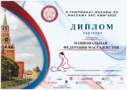 Официальное СВИДЕТЕЛЬСТВО членства в Союзе «Национальная Федерация массажистов»
